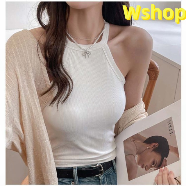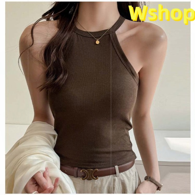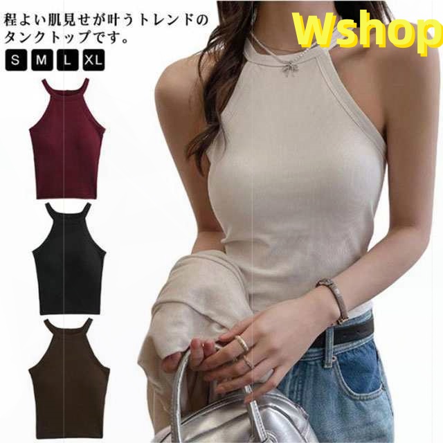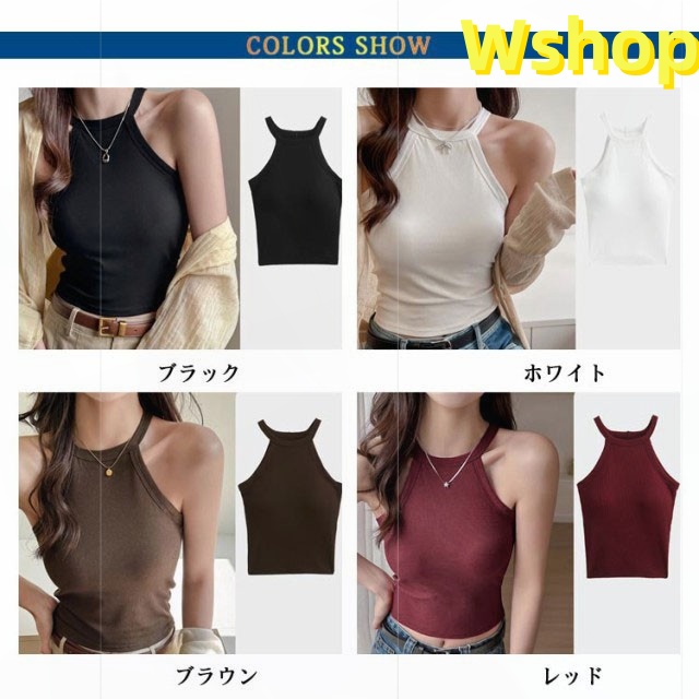 ホルターネック タンクトップ レディース カップ付き トップス ブラカップ キャミソール ブラトップ リブ生地 インナー ノンワイヤー 無地 レイヤード 重ね着 お洒落 スポーツ ストレッチ性