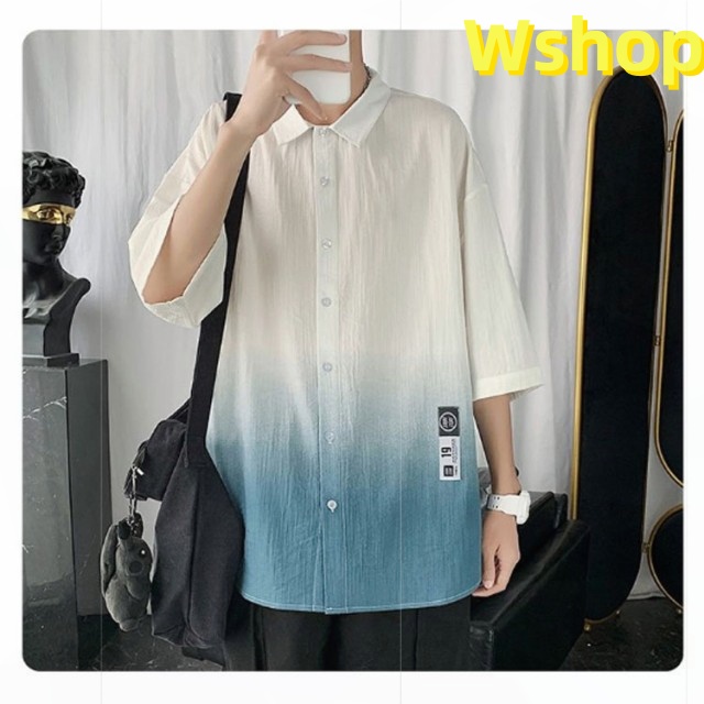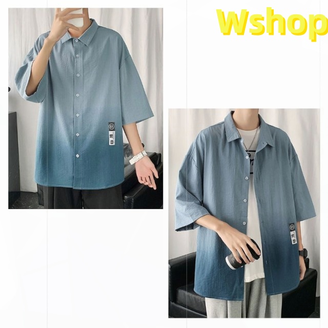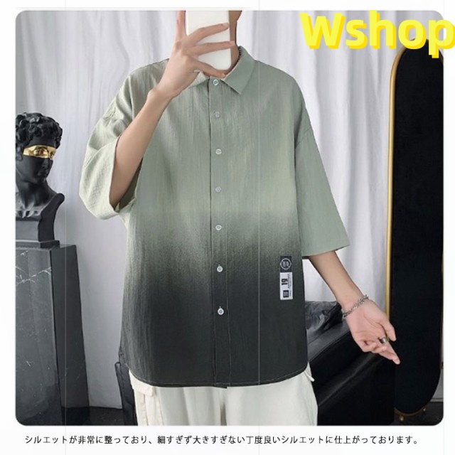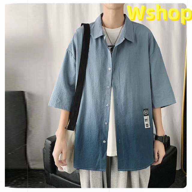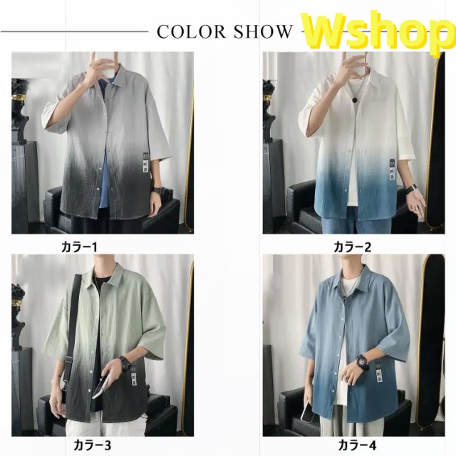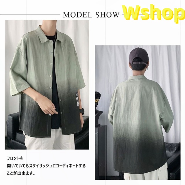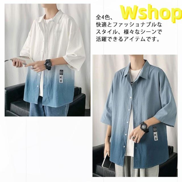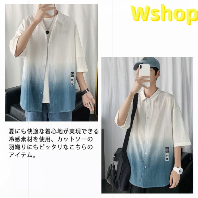 メンズ 七分袖シャツ グラデーション 接触冷感 XL サマー カジュアルシャツ ファッション 3XL 2XL 夏 メンズ L 開襟シャツ 半袖シャツ メンズシャツ 春夏 涼しい 韓国 シャツ