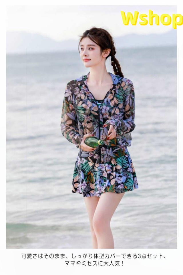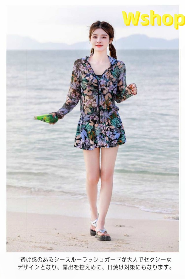 海水浴 ビキニ 30代 温泉 3 20代 お尻 二の腕 40代 タンキニ お腹 水着 50代 スカート付き 服みたいな水着 長袖ラッシュガード ママ水着 レディース 日焼け防止 シースルーパーカー 太もも 体型カバー 3点セット セパレート