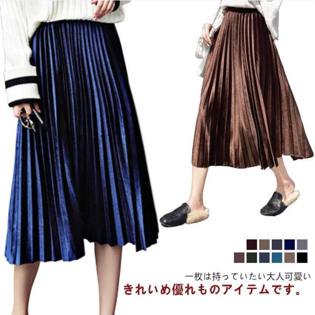 ロング丈 スウェードスカート ボトムス カジュアル 無地 aライン レディース スエード フレアスカート プリーツ プリーツスカート シンプル マキシ ウエストゴム ロング丈 裏地付き きれいめ 秋 秋冬 体型カバー レディース 夏 春 冬 フレア