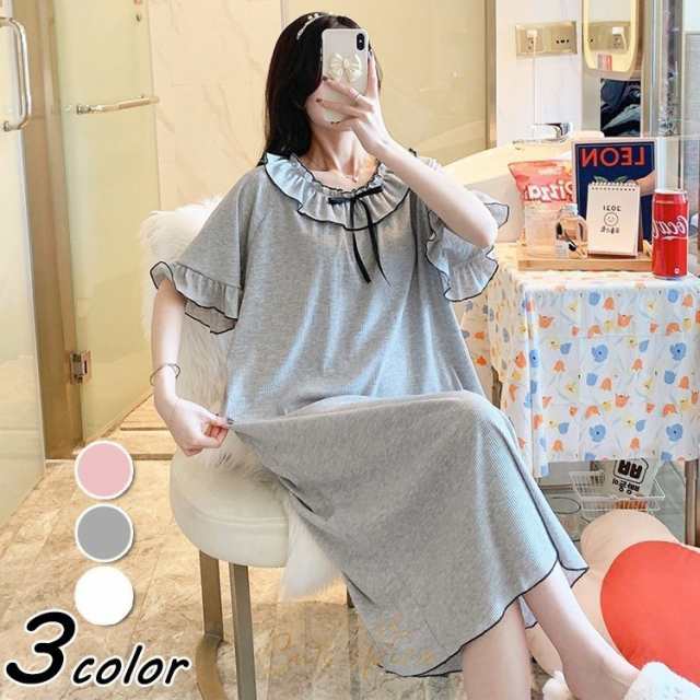 ネグリジェ 春夏 姫 ネグリジェ 半袖ワンピース 無地 フレアネグリジェ ロング丈 ネグリジェ パジャマ レディース 大人可愛い部屋着 オシャレ新作