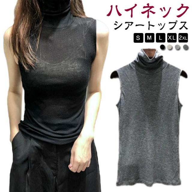 シアー レディース 大きいサイズ ノースリーブ ハイネック ハイネックtシャツ シアートップスハイネック 透け感 タンクトップ タートルネック インナー カットソー UVカット シアートップス レディース トップス レディース シアートップス 綿 レース 春 夏 首 無地
