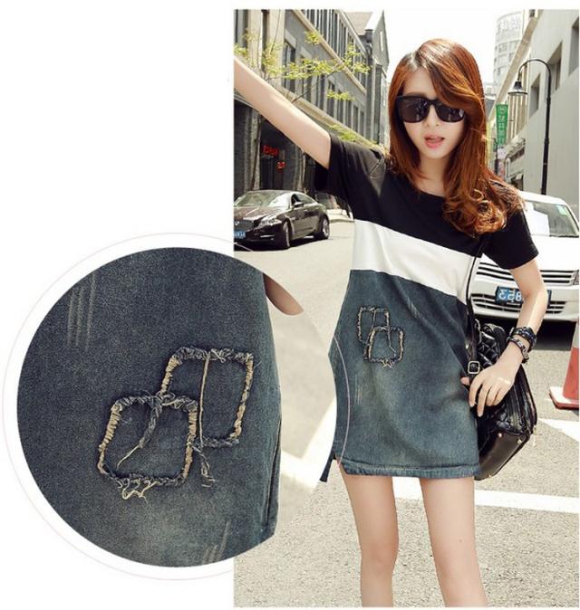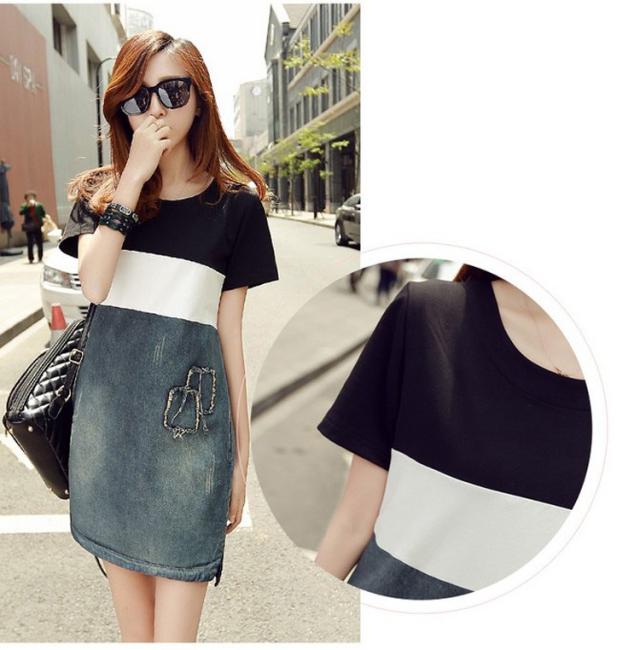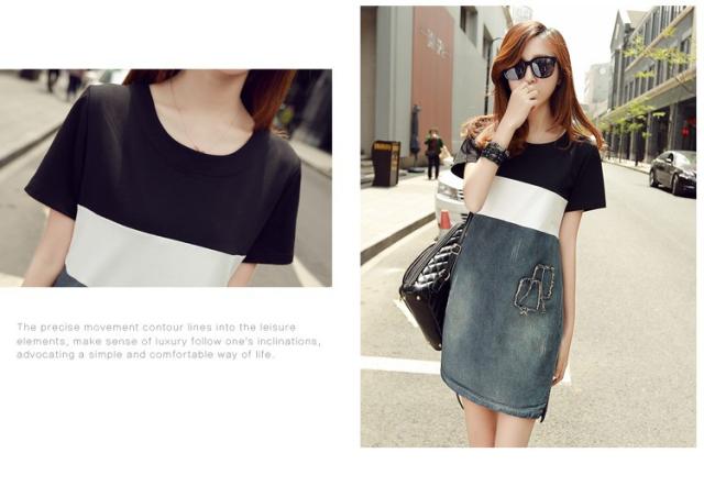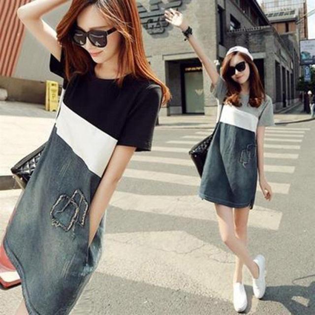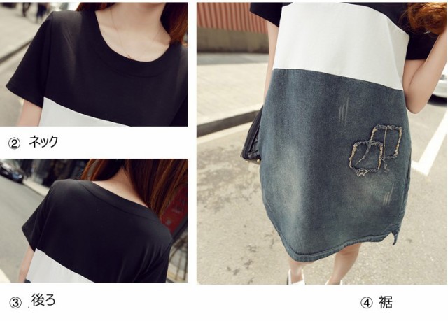 デニムワンピース レディース 春夏 膝丈ワンピース ボーダー 切り替え デニムスカート 半袖 膝丈ワンピース きれいめ カジュアル 韓国風 着痩せ オシャレ