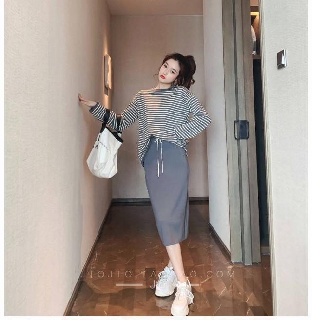 セットアップ レディース 秋冬 ジャージセットアップ おしゃれ 長袖ボーダー柄トップス タイトスカート2点セット 新作 運動会 スポーツカジュアル オシャレ