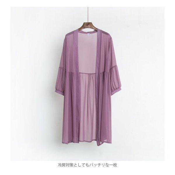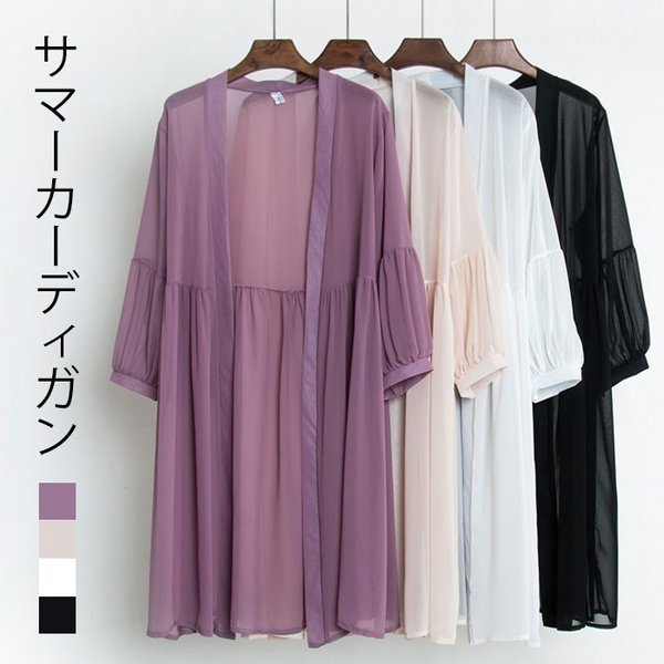 サマーカーディガン レディース シフォン シフォンカーディガン ロングカーディガン ロング丈 七分袖 薄手 無地 ゆったり 透け