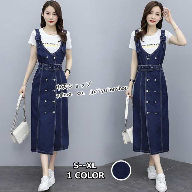 サロペットスカート レディース デニムワンピース 春夏コーデ デニムスカートジャンパースカート お洒落 チュニック ゆったり カジュアル OL 通勤 30代 40代