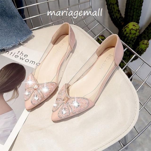 サンダル レディース キラキラ 春夏 とんがりトウ 履きやすい 痛くない ぺたんこ靴 スリッポン オシャレ