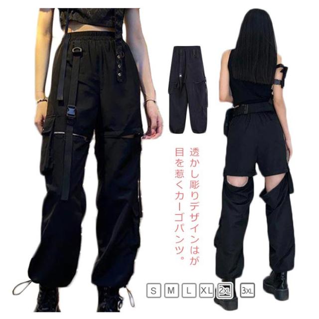 送料無料 カーゴパンツ ダンス衣装 レディース ヒップホップ 衣装 ストリート系 透かし彫り ロング丈 ダメーパンツ ダンスウェア ヒップホップ衣装 ボトムス カジュアル 長ズボン ジョガーパンツ イージーパンツ ウエストゴム かっこいい スポーツ ダンス発表会 原宿系