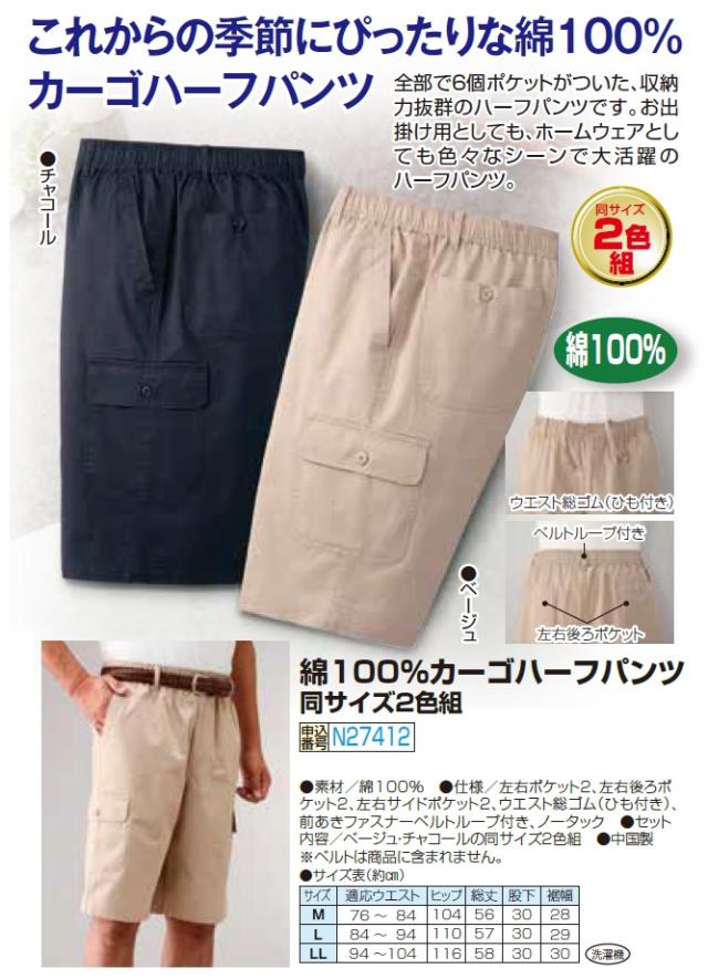 綿100% カーゴハーフパンツ 2色組 カーゴパンツ ハーフパンツ ショートパンツ メンズ 紳士服 シニア 男性 大人 コットン ショーパン 半パン 膝丈 ベージュ グレー 無地 シンプル 上品 ファッション 40代 50代 60代 70代 80代 90代 父の日 お父さん 春夏 sai p27412