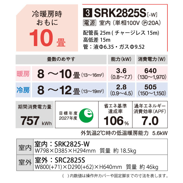 エアコン 標準工事費込 10畳 三菱重工 ルームエアコン Sシリーズ ビーバーエアコン SRK2825S-W 2025年モデル 単相100V