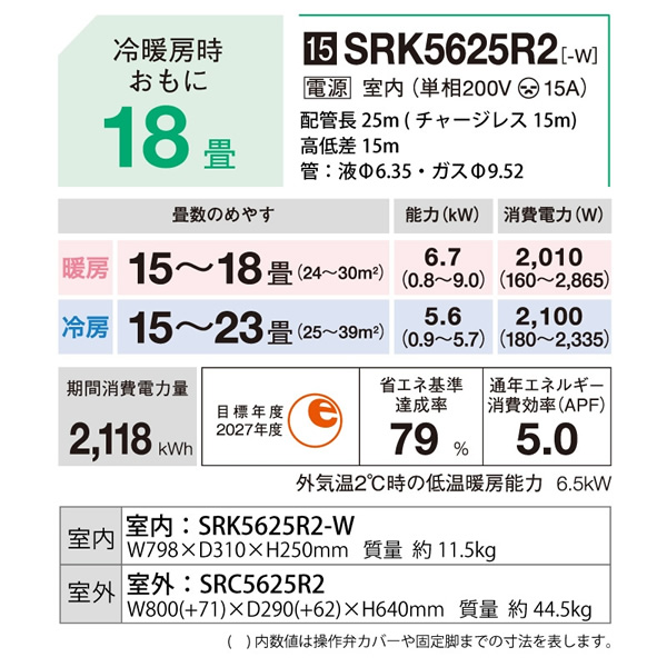 エアコン 標準工事費込 18畳 三菱重工 ルームエアコン Rシリーズ ビーバーエアコン SRK5625R2-W 2025年モデル 単相200V