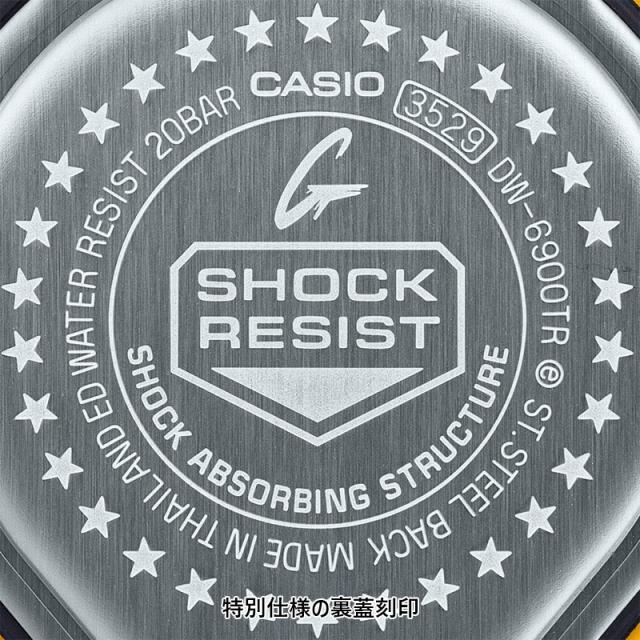 また、SHOCK RESISTマークを刻印した裏蓋に6900シリーズ誕生30周年を記念した星マークを30個レイアウト。