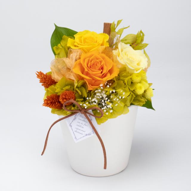 ビタミンカラーが華やかなプリザーブドフラワーアレンジメントです。