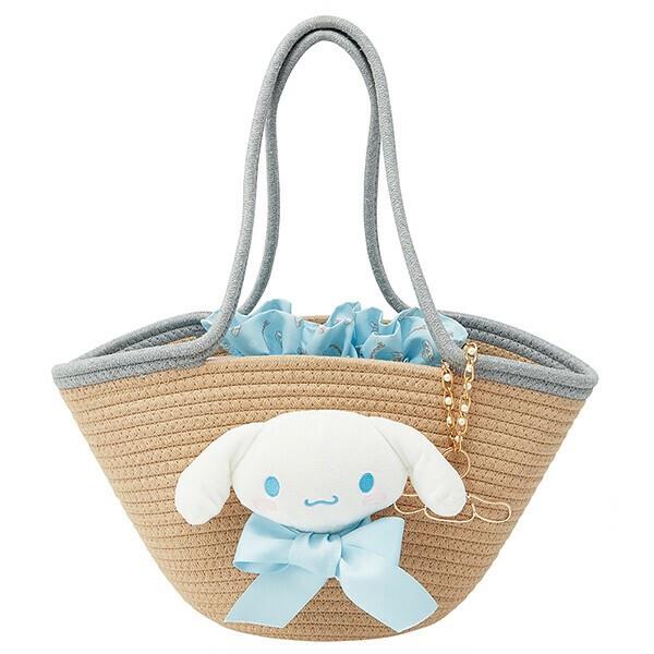 シナモロール ぬいぐるみ付かご風バッグ トートバッグ マスコット付き おしゃれ かわいい サンリオ キャラクター