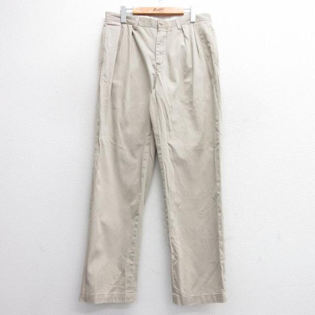 古着 パンツ メンズ 薄ベージュ カーキ W34 中古 ボトムス ロング 中古 古着