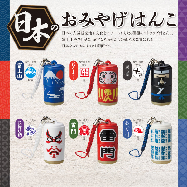 ・日本の人気観光地や文化をモチーフにしたストラップ付はんこです。