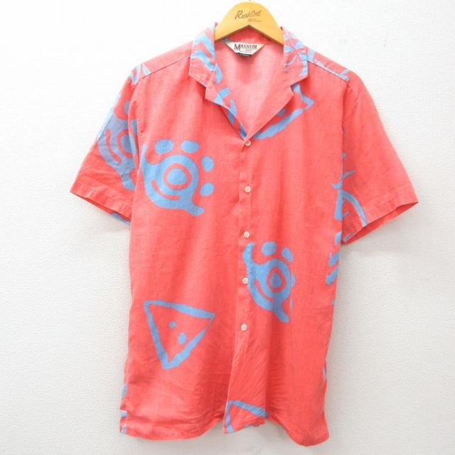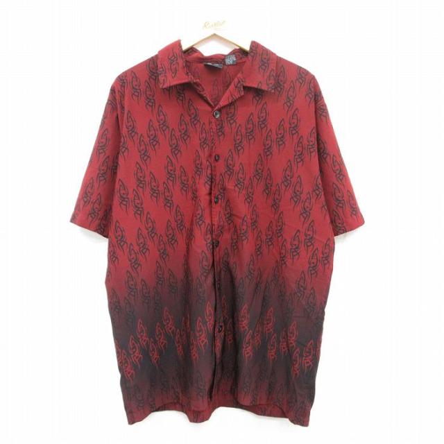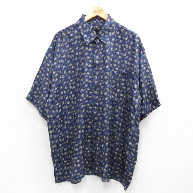 古着 半袖 シャツ メンズ 総柄 シルク 開襟 オープンカラー 黒他 ブラック XLサイズ 中古 トップス 中古 古着