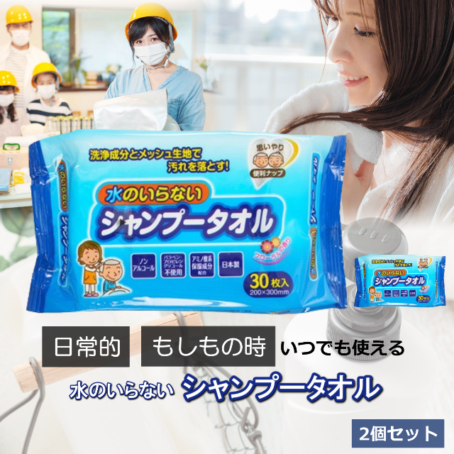 \1000円ポッキリ 送料無料/シャンプータオル 水のいらない 2個セット 防災グッズ ウェットシート 大一紙工株式会社 ウェットティッシュ 洗髪 髪 シャンプー お風呂 汗拭き 災害 断水