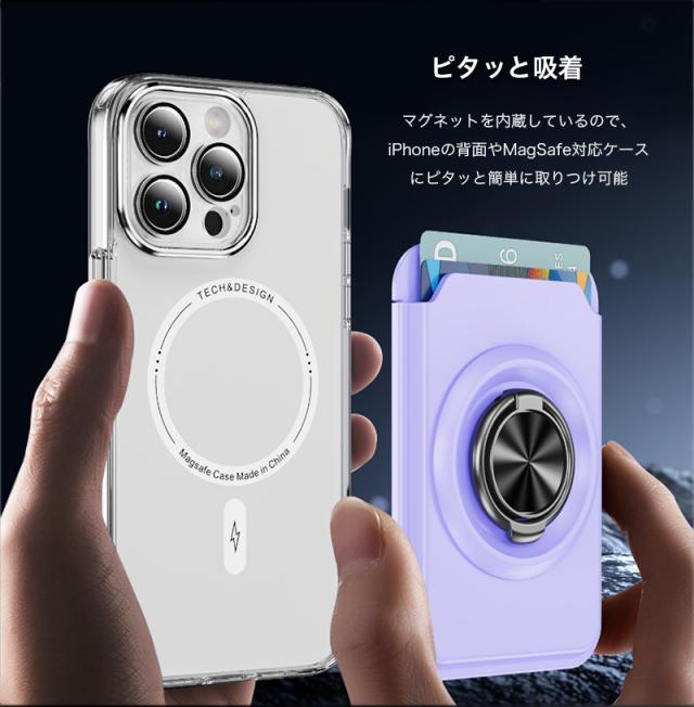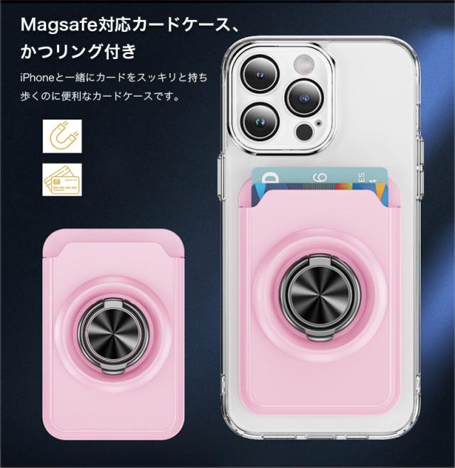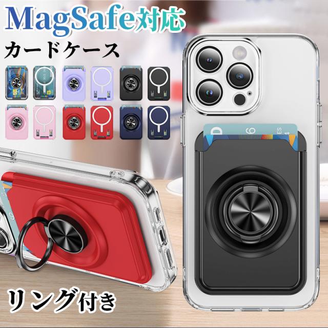 magsafe カードケース 落下防止 リング付き 角度調整 スタンド magsafe ウォレット マグセーフ iPhone wallet アクセサリー 2枚 カード収納 便利 軽量 薄型