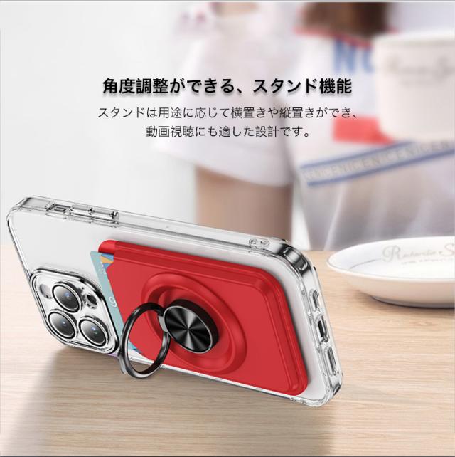 iPhone 16 pro max magsafe カード ケース iPhone 15 pro max magsafe カード ケース リング付き 角度調整 スタンド機能 iPhone 14 plus magsafe カード ケース iPhone 13 pro max magsafe カード ケース iPhone 12 magsafe カード ケース galaxy s22 s23 u magsafe ピグセル Pixel 7a 7 8 pro magsafe カード ケース ケース カバー スマホ カードホルダー マグネット 便利 通勤ウォレット Magsafe対応 アクセサリー iPhone スマホ カードホルダー カード収納 2枚 マグネット式 便利 スリム コンパクト 爆買