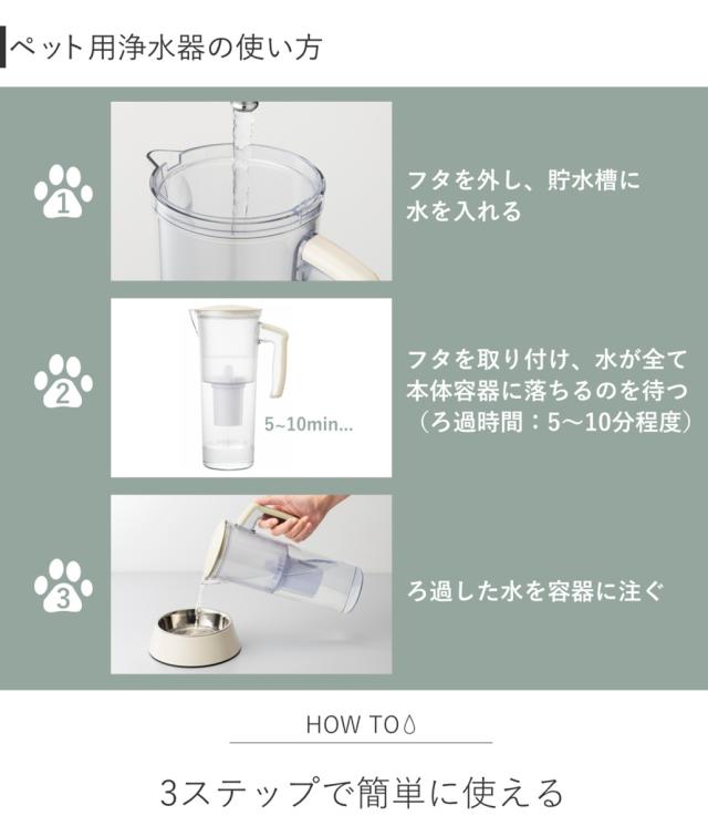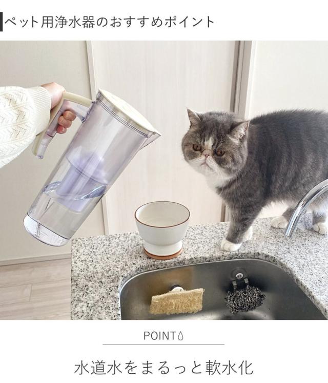 一度に『750ml』のおいしい軟水がつくれる大容量の浄水器です。大型犬やワンちゃん・ネコちゃんを多頭飼いをされているご家庭にもおすすめです。
