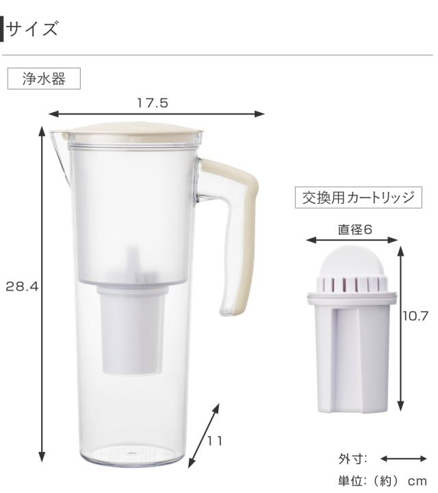 | サイズ | 【浄水器】 約 幅17.5×奥行11×高さ28.4(cm) 【交換カートリッジ1個あたり】 約 直径6×高さ10.7(cm) |