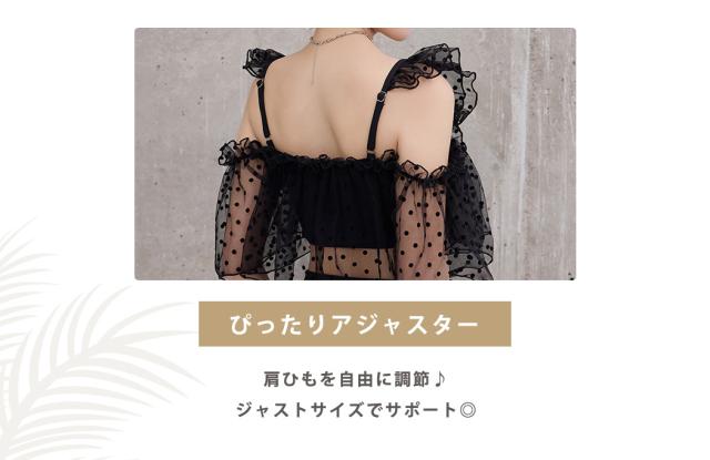 ふんわり可愛いドット柄のシアーフリルがポイント!