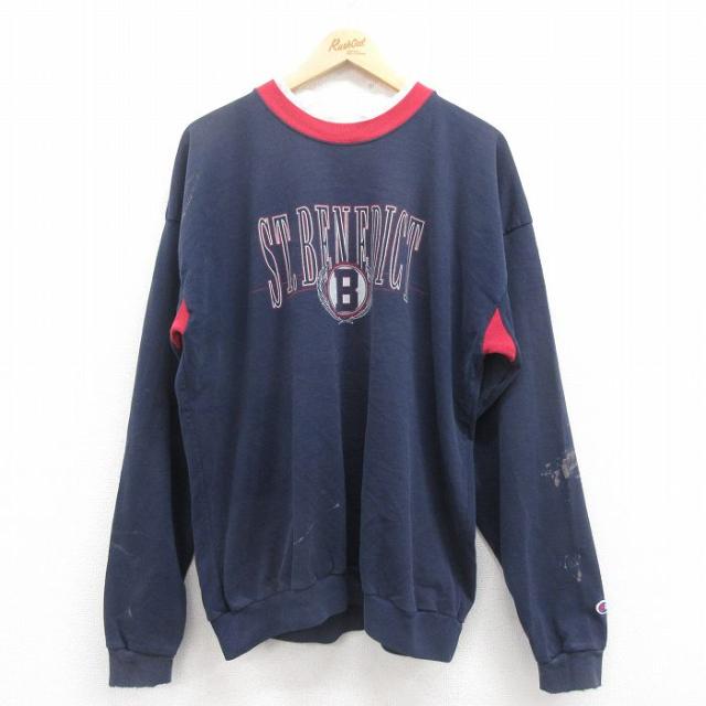 古着 チャンピオン Champion 長袖 スウェット メンズ 90年代 90s B 大きいサイズ クルーネック USA製 紺 ネイビー XLサイズ 中 中古 古着