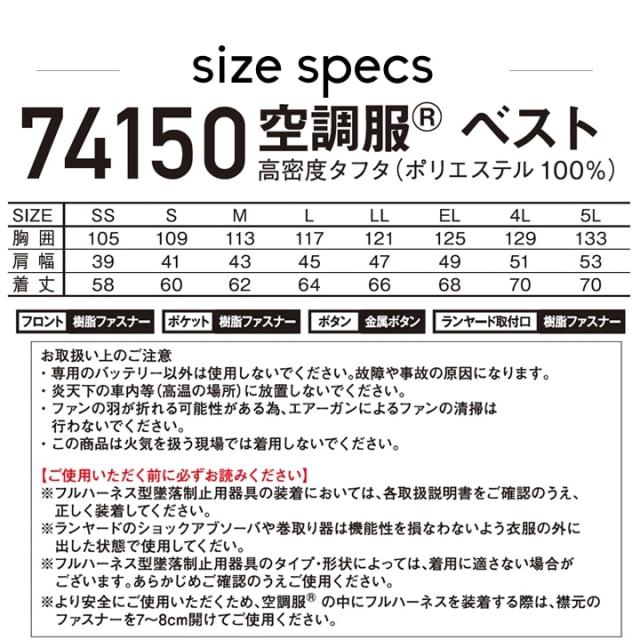 | 74150【服のみ】 空調ベスト | 24V対応【機械のみ】 ファン&バッテリーセット |