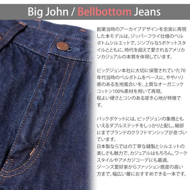 ■ BIG JOHN ビッグジョン商品詳細 創業当時のデザインを踏襲したジッパーフライのベルボトム。 |
