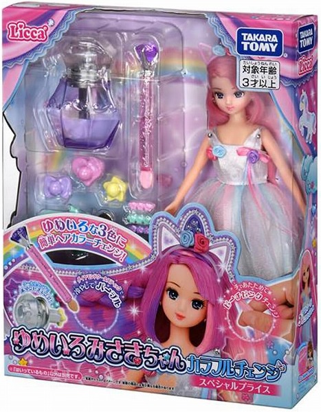 髪色がゆめいろな3色に簡単にカラフルチェンジできるリカちゃんフレンドみさきちゃんです。