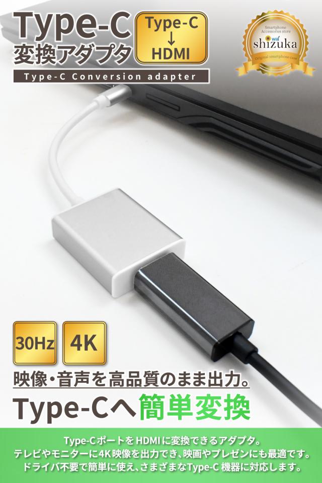 Type-C HDMI 変換アダプタ アダプター コネクタ タイプC 高速転送 4K高画質 4K@30Hz オス メス iPhone アイフォン android アンドロイド iPad タブレット MacBook windows テレビ 接続 モニター ミラーリング