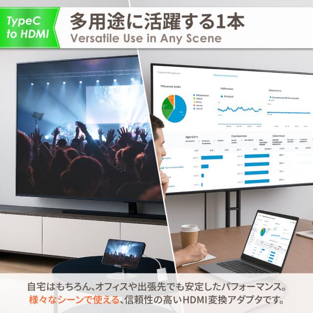 変換アダプタ アダプター アダプタ 変換器 HDMI hdmi TypeC タイプ-C TYPEC テレビ 接続 iPhone iphone iPad スマホ タブレット ノートパソコン PC Apple MacBook Mac Book windows TV モニター ディスプレイ ゲーミングモニター TV プロジェクター 4K対応 取り付け簡単 差し込むだけ 薄型 軽量 コンパクト デザイン 持ち運び 動画 映像 コード 投影 ミラーリング 充電 データ転送 在宅ワーク テレワーク zoom 遠隔授業 テレビ会議 リモートワーク 大画面 オンライン飲み会 リモート授業 おしゃれ オシャレ