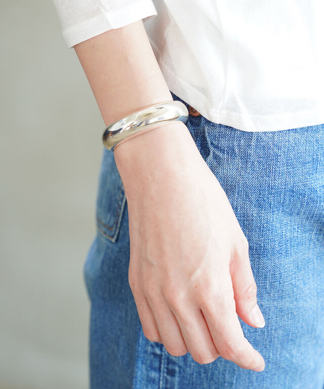 ニュアンスラインでデザインされたシルバーのバングル。
