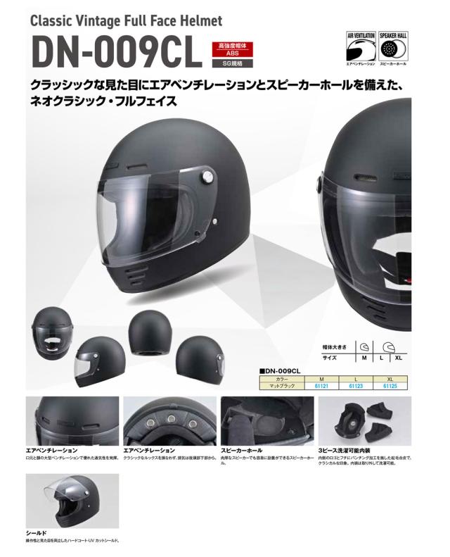 ★送料無料★デイトナ(Daytona) バイク用 ヘルメット フルフェイス SG規格 高強度ABS クラシック エアベンチレーション / スピーカーホール装備 DN-009CL【マットブラック】