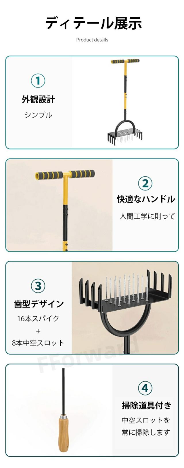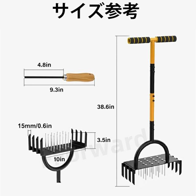 芝生穴あけ器 2IN1 芝生のエアレーションスパイク 長さ98cm 芝生穴あけ用 炭素鋼 土 庭 芝生の通気エアレーター用具