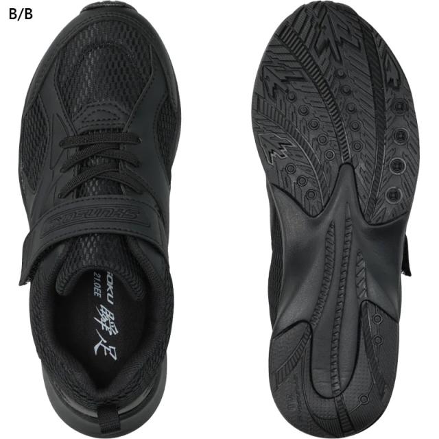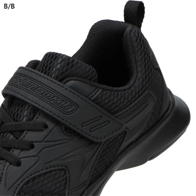 ゴム紐×面ファスナー/メッシュ 校則対応カラーの瞬足スクールモデル。