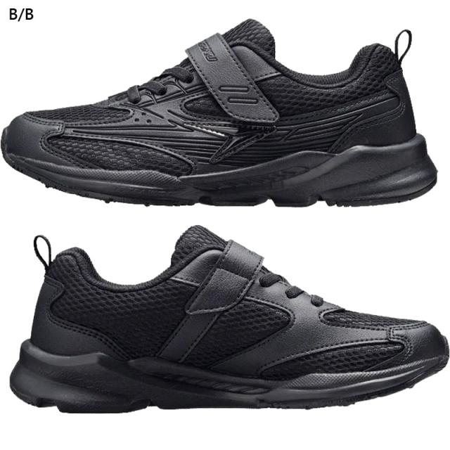 校則対応カラーと、脱ぎ履きしやすいストラップ×ゴム紐デザインの3Eワイドモデル。