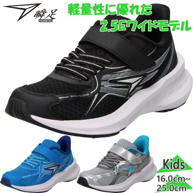 瞬足 ジュニア キッズ JJ-212 男の子 靴 シューズ スニーカー マジックテープ ベルクロ 運動 通学 シュンソク ブラック 黒 ブルー 青 シルバー 送料無料 syunsoku SJJ2120