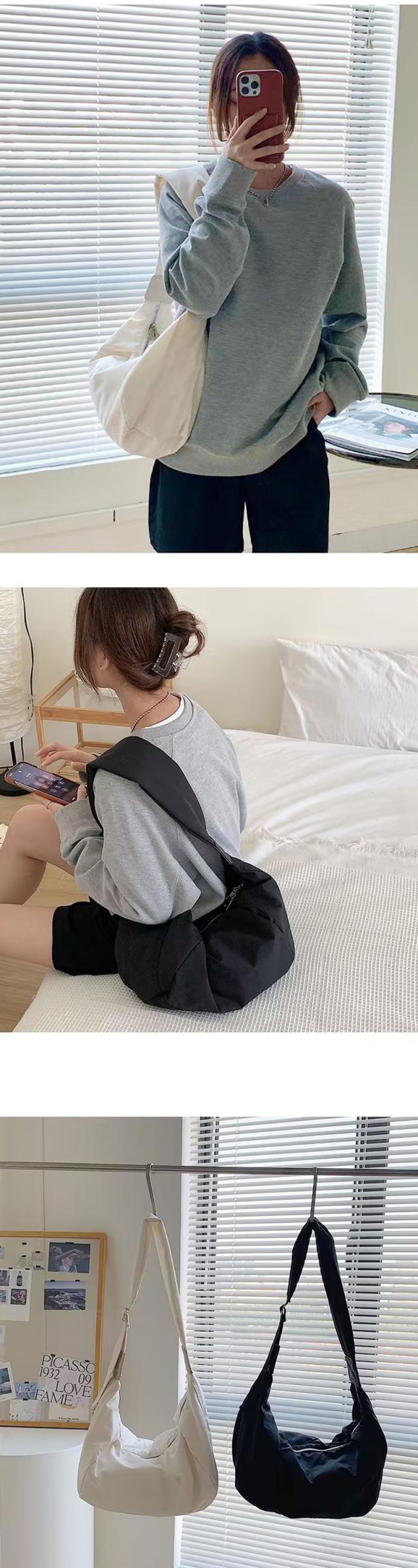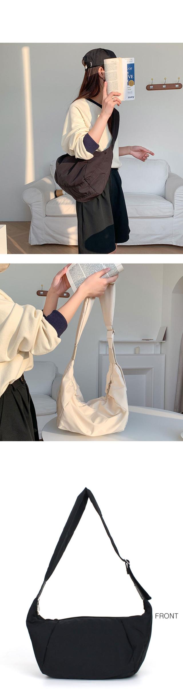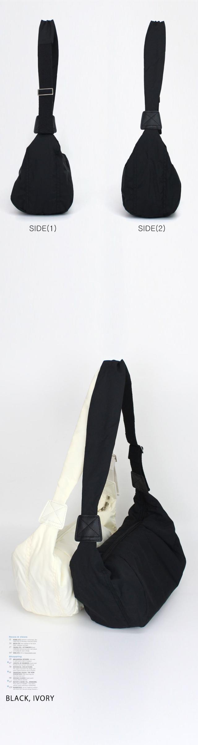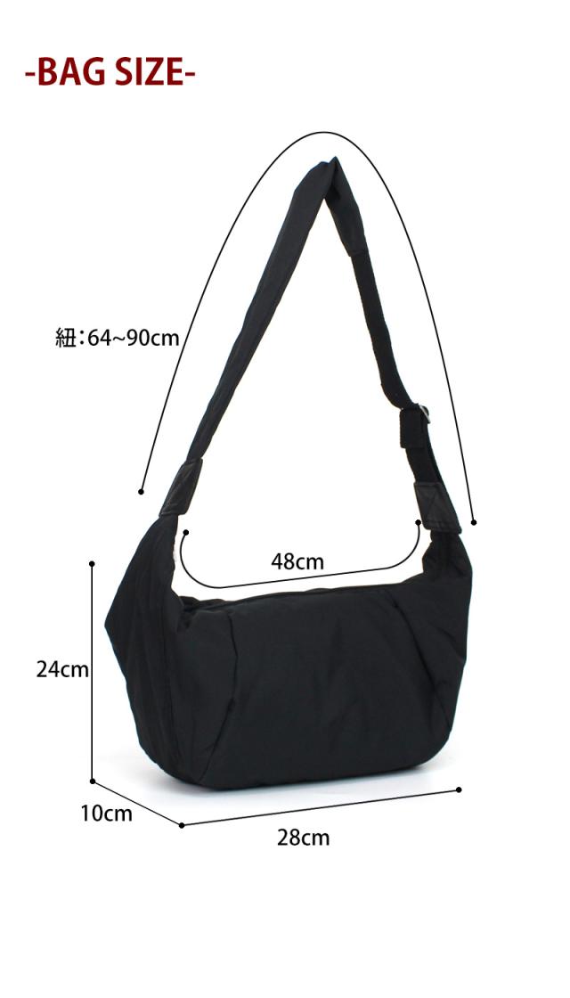 | 丈夫なナイロン素材で仕上げられたショルダーバッグ。 身体に馴染むシルエットで持ちやすく、太めに設定されたショルダーストラップが荷物が多い日のストレスを軽減してくれます。 どんなコーディネートにも合わせやすいです。 |