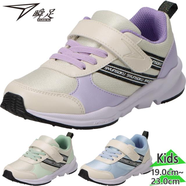 3E 幅広 ワイド 瞬足 ジュニア キッズ 女の子 靴 シューズ ランニングシューズ スニーカー 通学 運動 マジックテープ シュンソク ブルー 青 パープル 紫 送料無料 syunsoku LEC8140