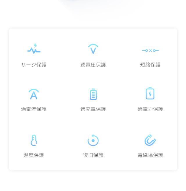 USB-A出力:5V-3A/10V-2.25A/9V-2A/12V-1.5A