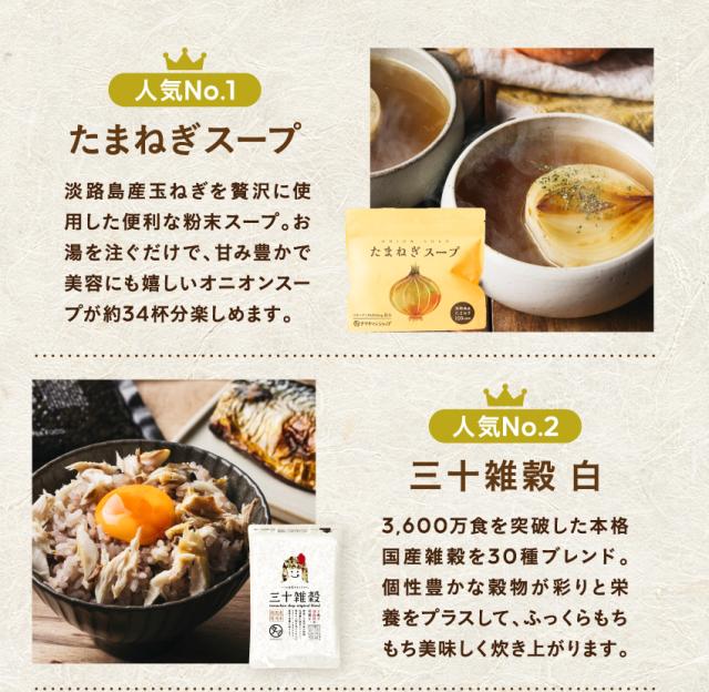 【セット内容】特性たまねぎスープ(コラーゲン入り)/三十雑穀(白)/こなゆきコラーゲン/三十雑穀スープシリーズ(みそ)/みらいのこうそ(レモン)/ノベルティー2種
