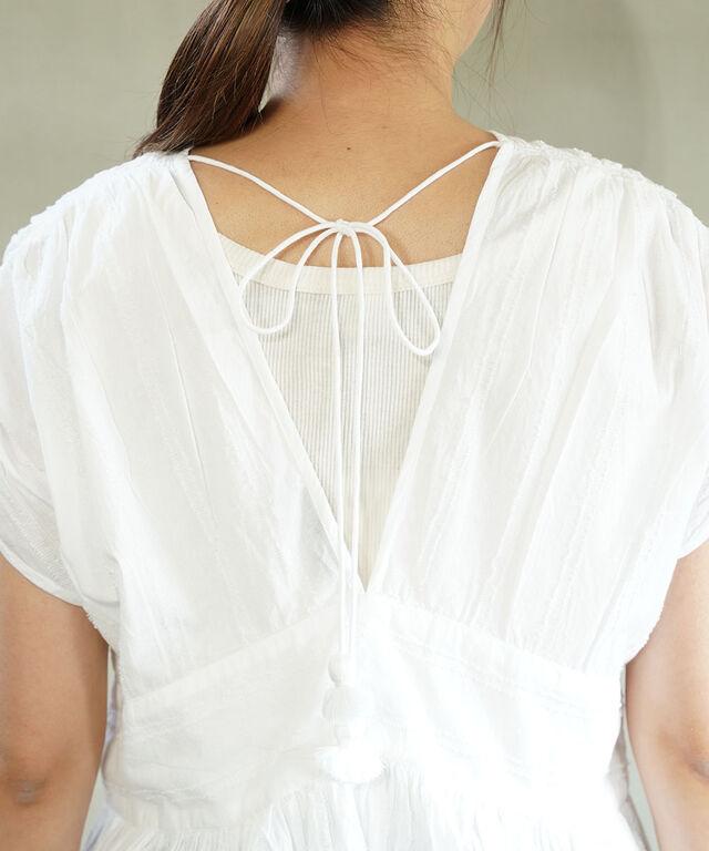 背面もV字に切り込みを入れることで、背中見せなスタイルに。