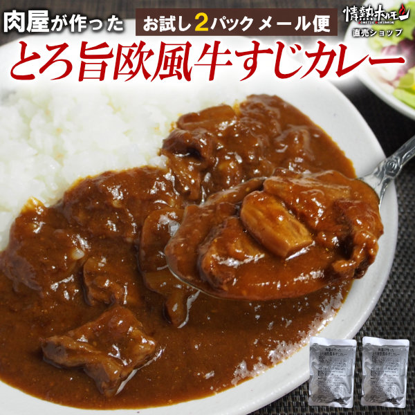 メール便 送料無料 カレー レトルト 肉屋がつくった とろ旨欧風 牛すじカレー 2パック レトルト食品 情熱ホルモン 情ホル 他の商品と同梱不可です