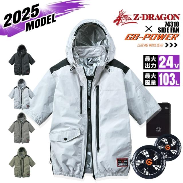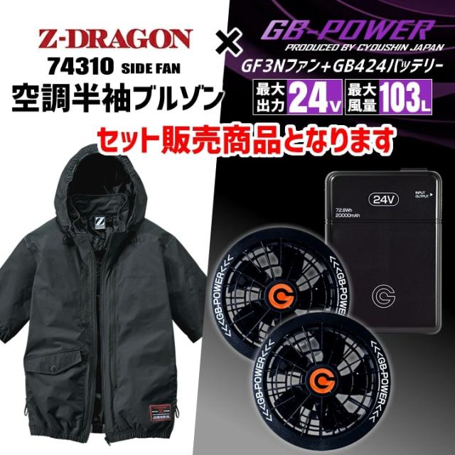 【即日発送】空調服 半袖ブルゾン サイドファン Z-DRAGON 74310 バッテリー&ファンセット GB-POWER 24V アルミコーティング フルハーネス対応 遮熱 UVカット 熱中症対策 軽量 撥水 作業着 作業服 電動ファン対応作業服 自重堂