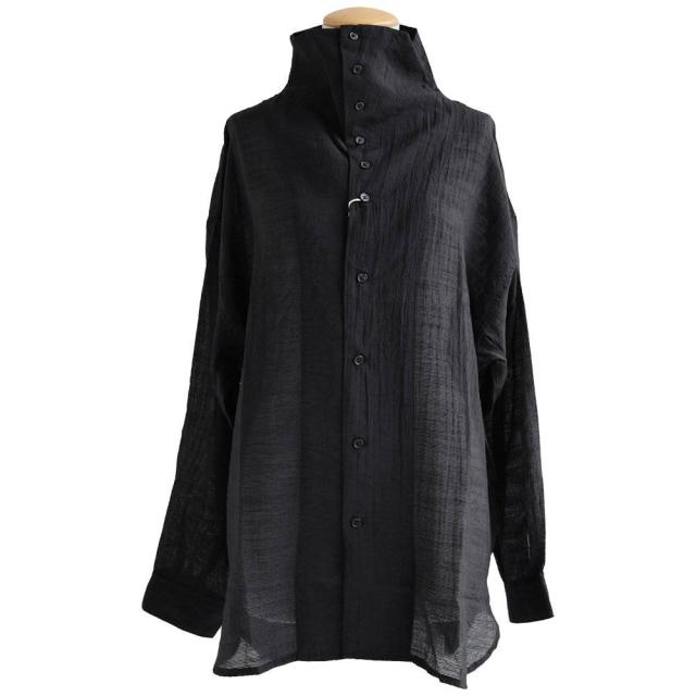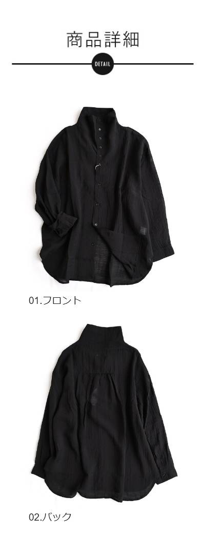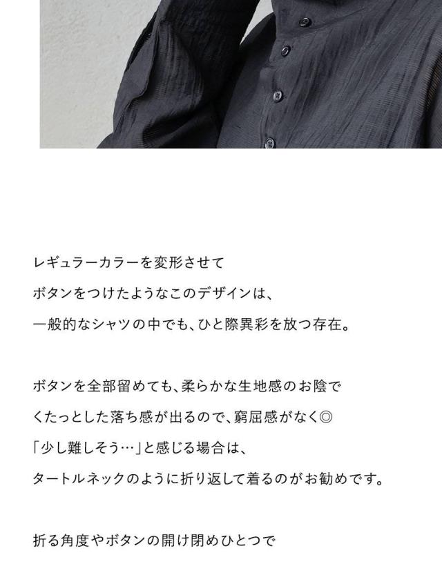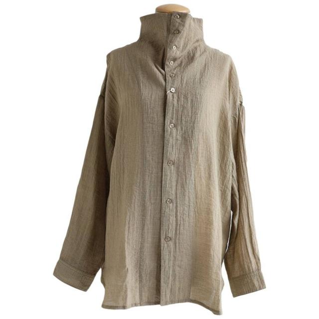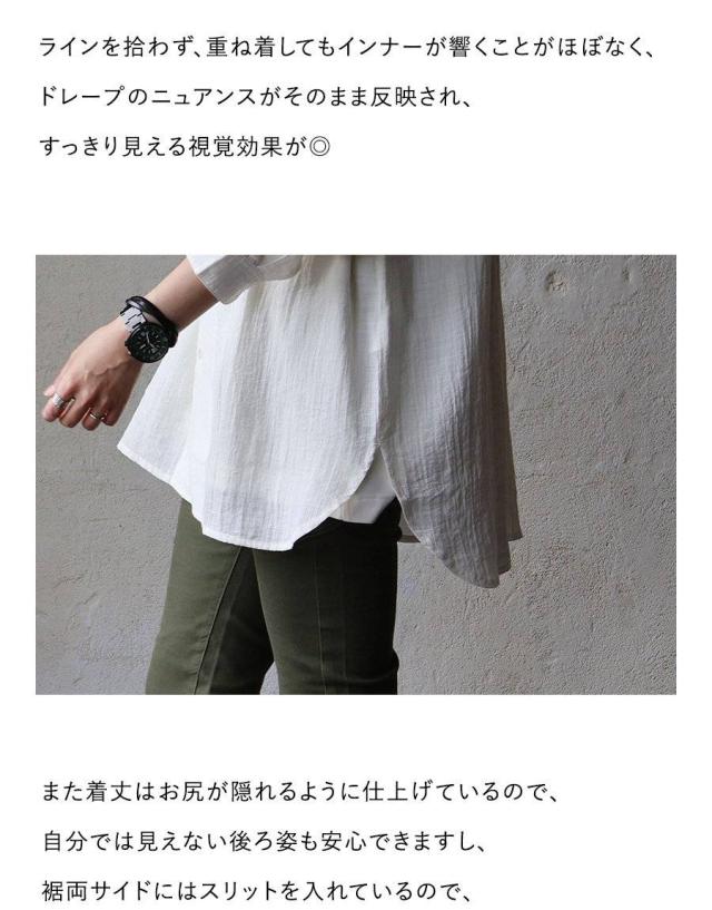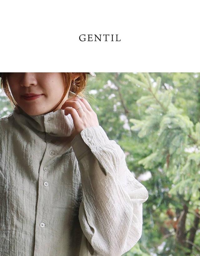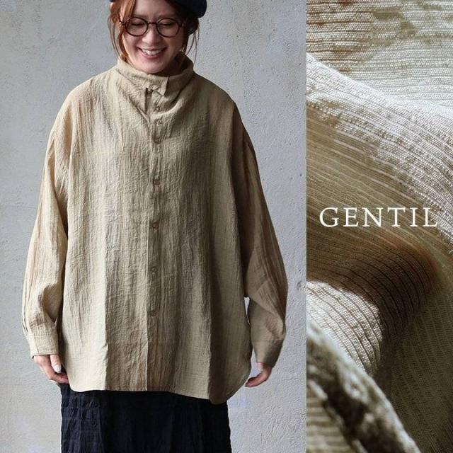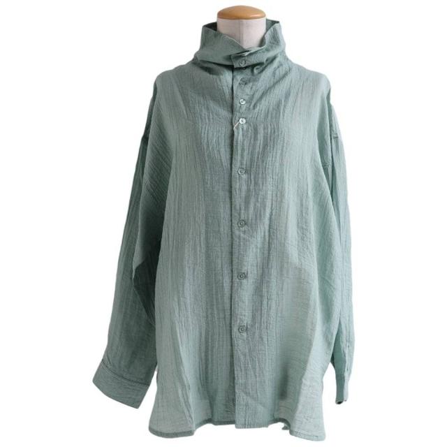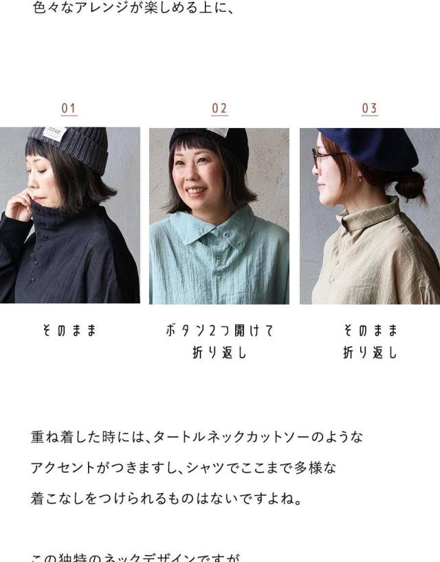 【メール便50】 シャツ 長袖 涼しい レディース 変形ネック ハイネック タートル 連ボタン ワイド 着痩せ 首元 お尻 体系 カバー 薄手 軽い シアー 晩夏 初秋 UV エアコン対策 大きいサイズ カジュアル メンズライク パティ GENTIL ジャンティ