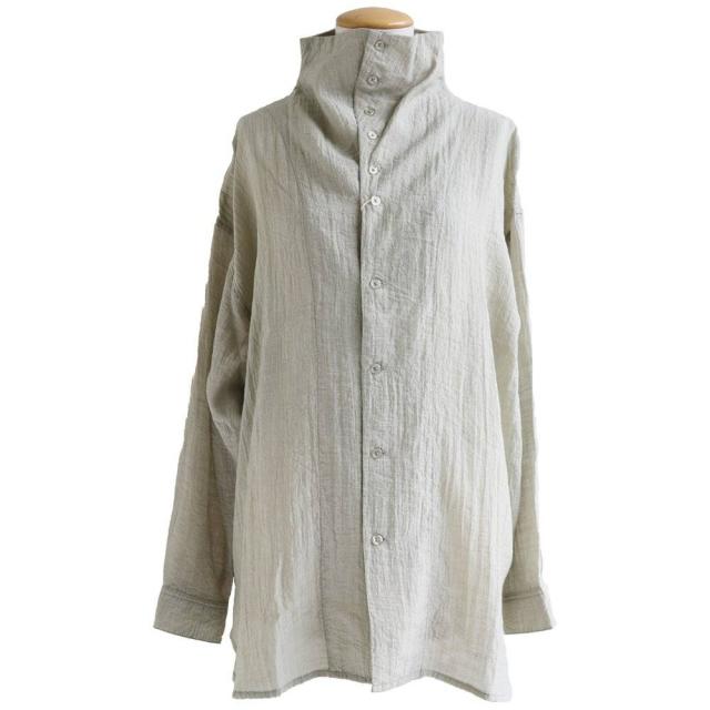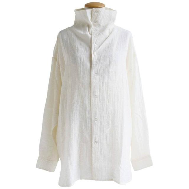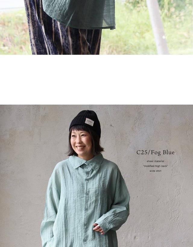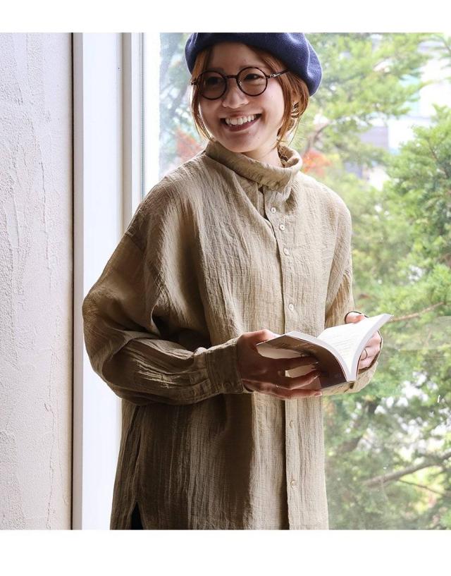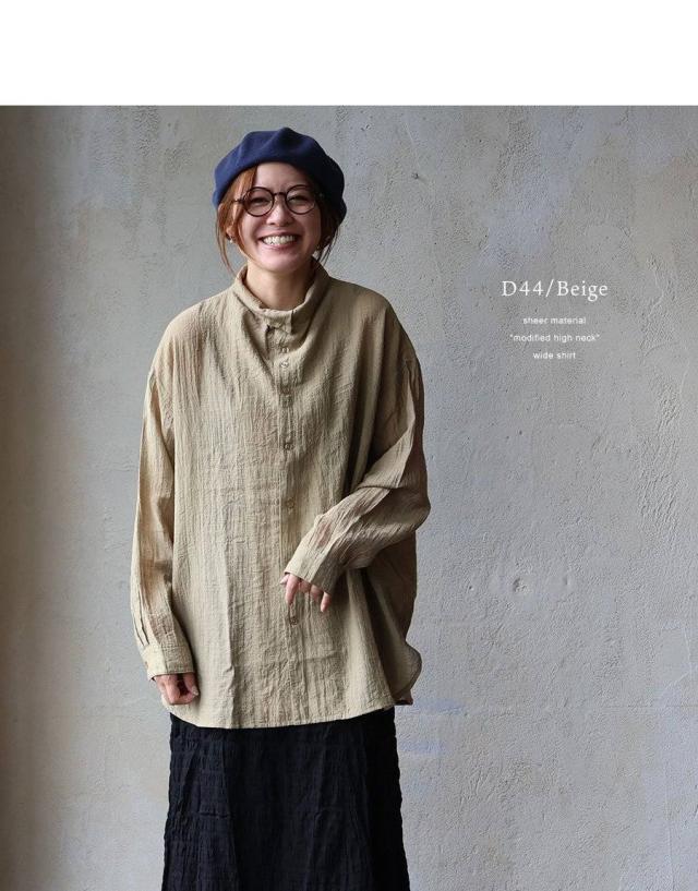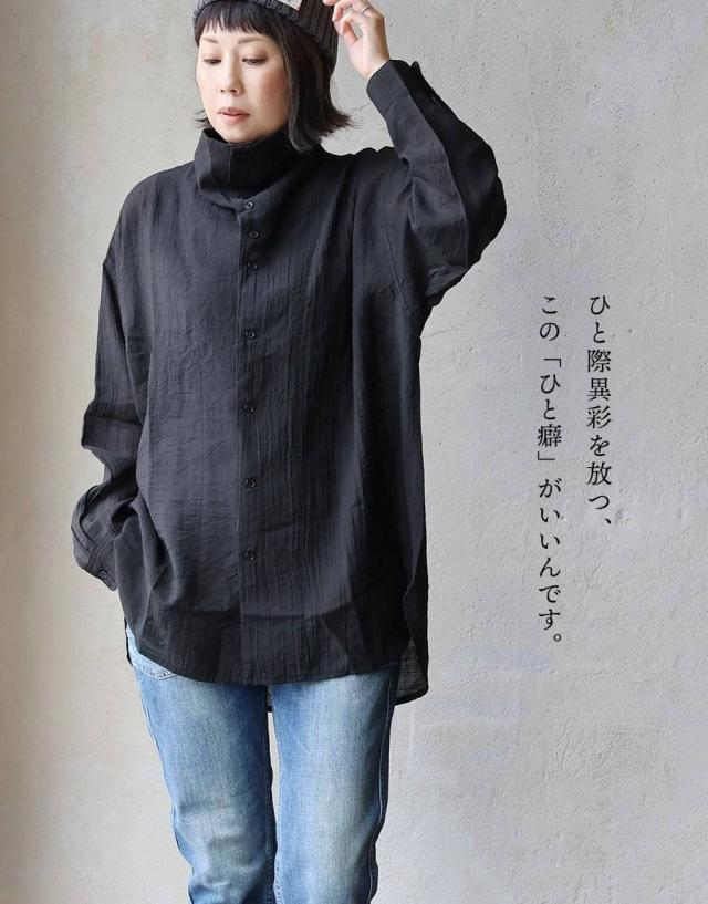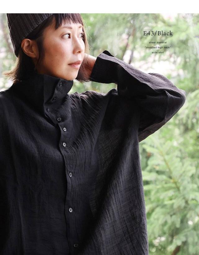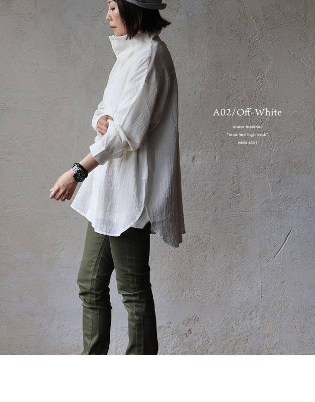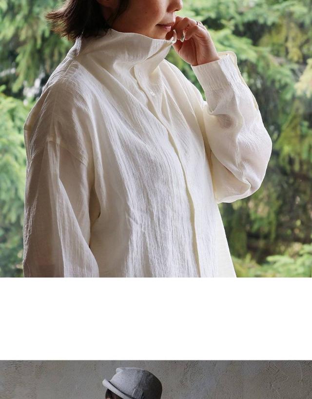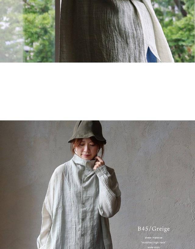 シャツ 長袖 涼しい レディース 変形ネック ハイネック タートル 連ボタン ワイド 着痩せ 首元 お尻 体系 カバー 薄手 軽い シアー 晩夏 初秋 UV エアコン対策 大きいサイズ カジュアル メンズライク パティ