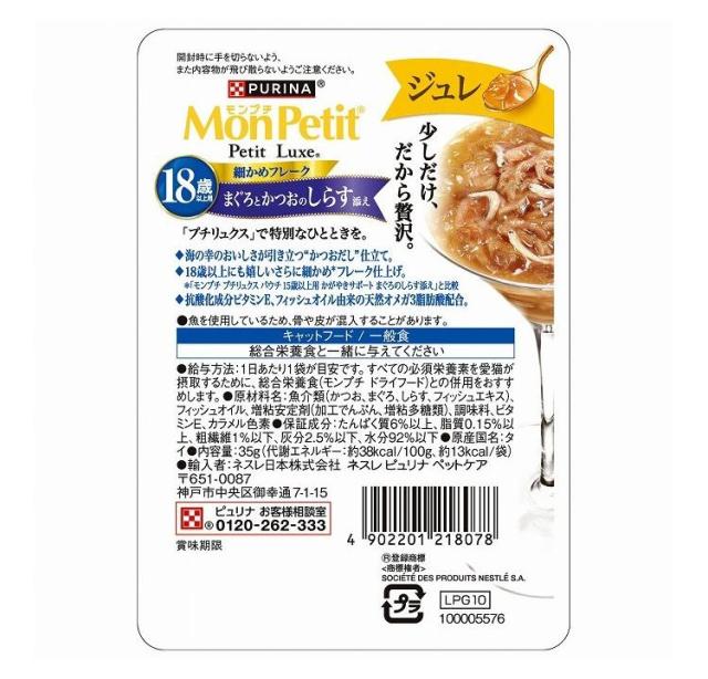 【12個セット】 ネスレ日本 モンプチ プチリュクスパウチ ジュレ18歳しらす 35g