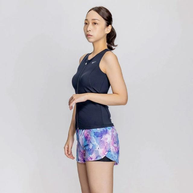 ナイキ レディース ジップ付き袖なし総柄2in1パンツセパレーツ スイムウエア スイミング 水泳 フィットネス水着 グレー ブルー 青 パープル 灰色 紫 送料無料 NIKE 2993128